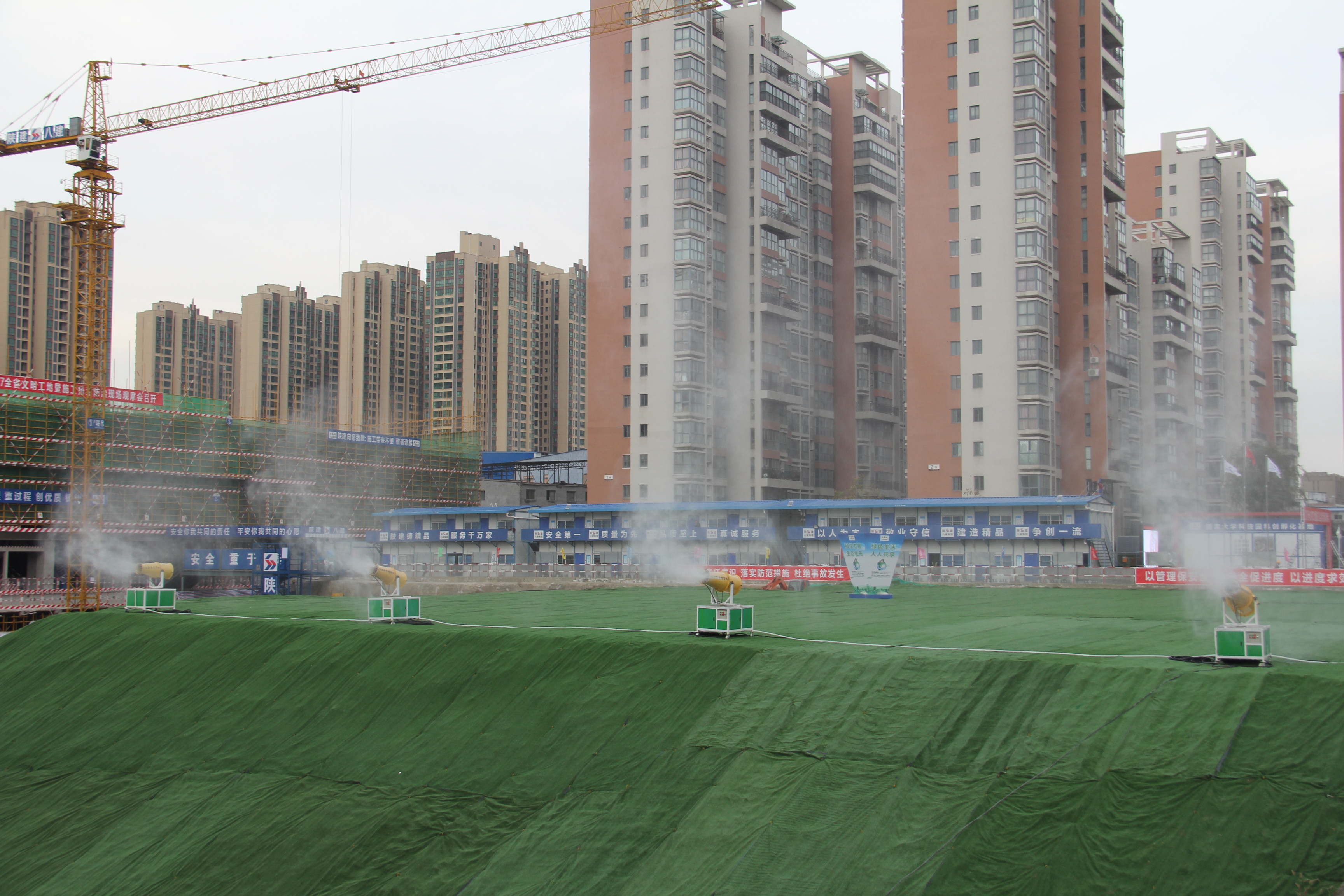 根據(jù)活動(dòng)安排,大家先后參觀了兩個(gè)項(xiàng)目的辦公區(qū)、生活區(qū)和生產(chǎn)區(qū)。其中,陜西建工第八建設(shè)集團(tuán)有限公司國(guó)家科技園孵化器基地項(xiàng)目的高壓降塵噴霧系統(tǒng)、基坑和道路雙向噴淋系統(tǒng)、工具式隔音墻、圍墻垂直綠化、活動(dòng)房屋面雨水回收系統(tǒng)、三級(jí)沉淀池、紅外三聯(lián)動(dòng)洗車(chē)臺(tái)、LED燈帶、BIM深化設(shè)計(jì)、VR安全教育體驗(yàn)等施工亮點(diǎn)突出,大家一邊聽(tīng)講解員的講解,一邊用手機(jī)拍攝現(xiàn)場(chǎng)圖片,有的還親自體驗(yàn)了VR安全教育,充分領(lǐng)略了現(xiàn)代化科技在工程建筑方面的先進(jìn)成果。據(jù)介紹,該項(xiàng)目綠色施工方面成績(jī)斐然,榮獲了西安市雁塔區(qū)“治污減霾樣板工地”稱號(hào)。緊接著,大家還對(duì)陜西建工第二建設(shè)集團(tuán)有限公司新開(kāi)門(mén)南路市政工程的智慧工地管理平臺(tái)、BIM技術(shù)、聯(lián)網(wǎng)式自動(dòng)噴淋系統(tǒng)、太陽(yáng)能平板集熱洗浴系統(tǒng)、環(huán)保遠(yuǎn)程門(mén)禁監(jiān)控系統(tǒng)等一系列新型技術(shù)進(jìn)行了觀摩學(xué)習(xí)。