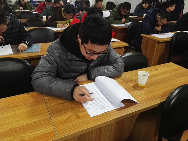 上午九點(diǎn)競賽正式開始。參賽人員拿到題后,細(xì)心瀏覽并作答,現(xiàn)場答題氛圍安靜嚴(yán)肅。據(jù)悉,此次競賽題目分為兩類,分別是土建和安裝專業(yè),由施工方案競賽評選領(lǐng)導(dǎo)小組出題。通過對現(xiàn)場答題職工的采訪,他們認(rèn)為此次競賽的題量適中,題目有深度,雖然按照書本知識能夠答完,但是要結(jié)合安全文明施工、綠色施工、優(yōu)質(zhì)結(jié)構(gòu)和新技術(shù)示范創(chuàng)建等要求,答題標(biāo)準(zhǔn)就必須提升檔次,不再局限于答完,更要求答好、答精。公司也據(jù)此為參賽人員留夠充足的答題時(shí)間,讓他們認(rèn)真思考,耐心作答。