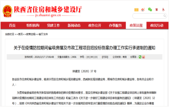 2月17日,省住建廳印發(fā)通知,明確自即日起至疫情結(jié)束前,我省省級房屋及市政工程項目招投標(biāo)備案工作所有材料實行承諾制。企業(yè)在辦理招投標(biāo)備案時,由建設(shè)單位依法對備案材料的真實性和完整性進(jìn)行承諾。
